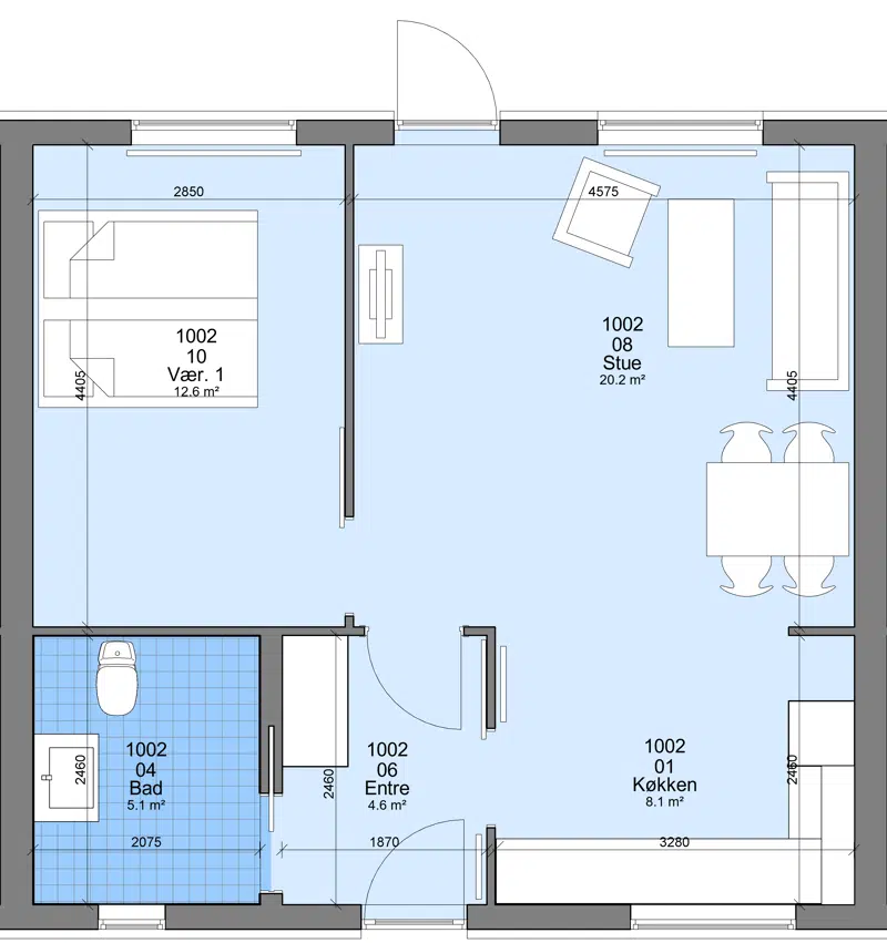 85 stk 2 rums 61 m2, 224 stk 3 rums 83,5 m2, 64 stk 4 rums 103 m2