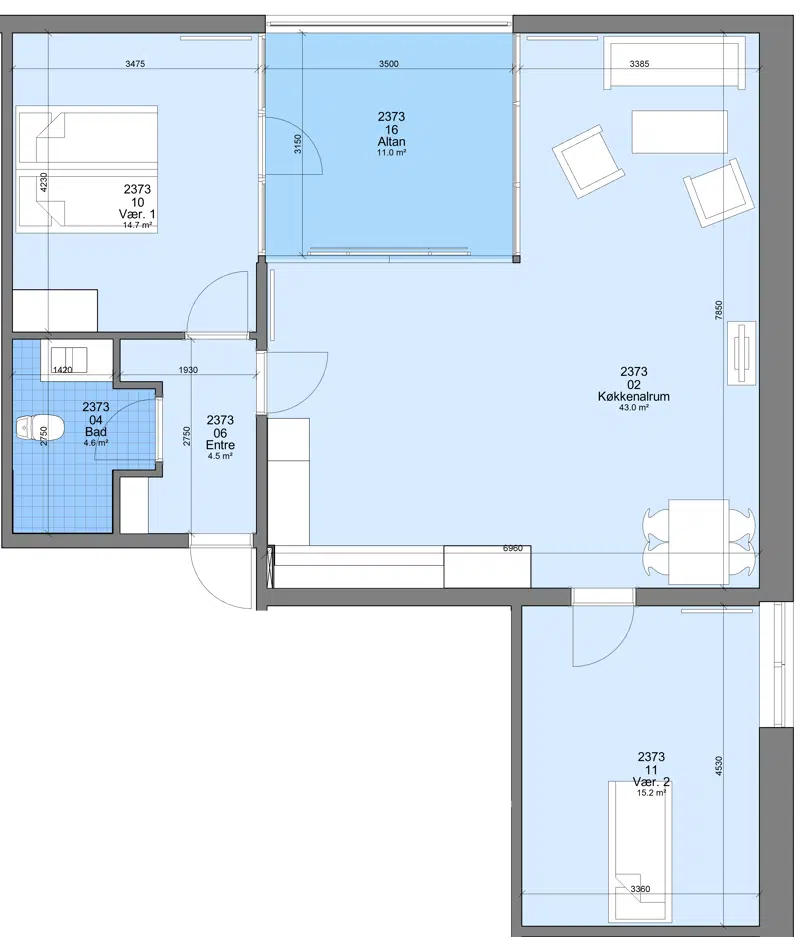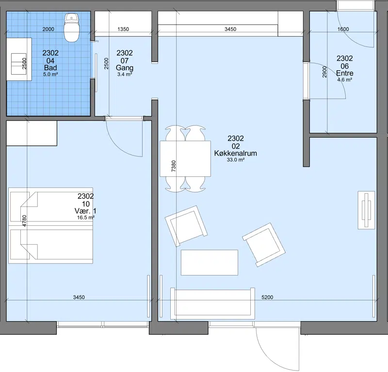 25 stk 1 rums ungdomsboliger 33 m2, 37 stk 2 rums 71,6-84,7 m3, 1 stk 3 rums 104,2 m2, Penthouse lejligheder: 8 stk 2 rums 77,9-89,1 m2, 5 stk 3 rums 92,6-110 m2