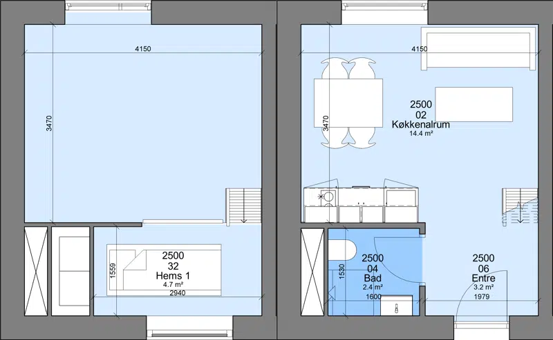 25 ungdomsboliger. 27m2 samt hems på 4,5 m2
