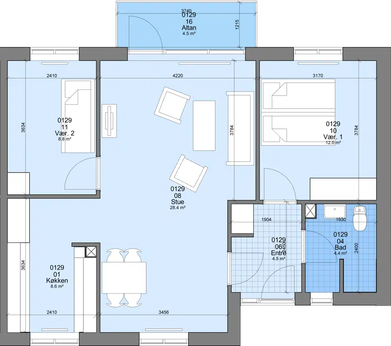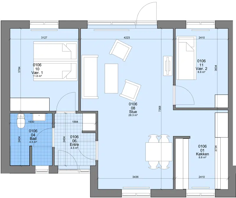 2 værelses