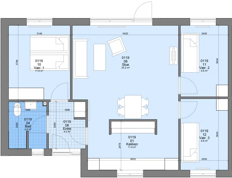 3 værelses