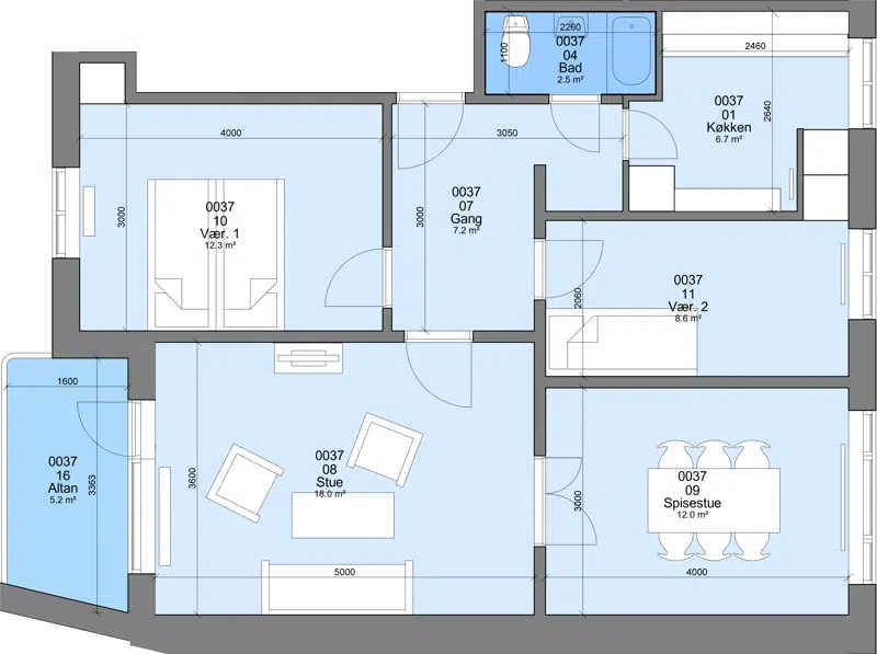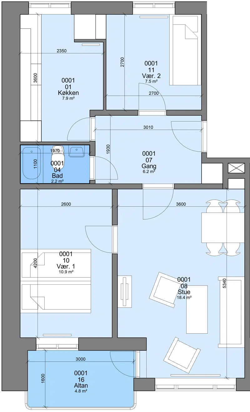 36 stk 3 rums 71 m2, 12 stk 4 rums 85 m2