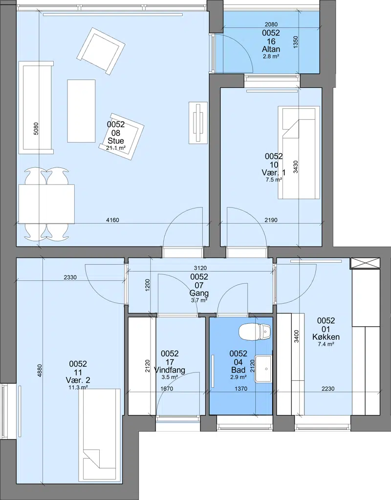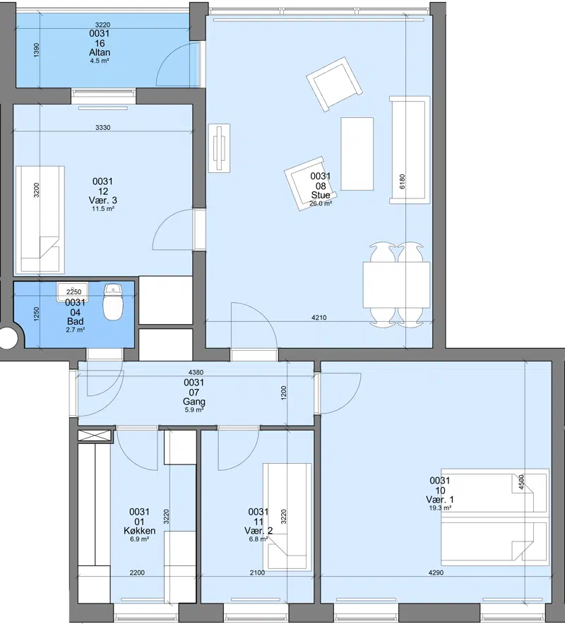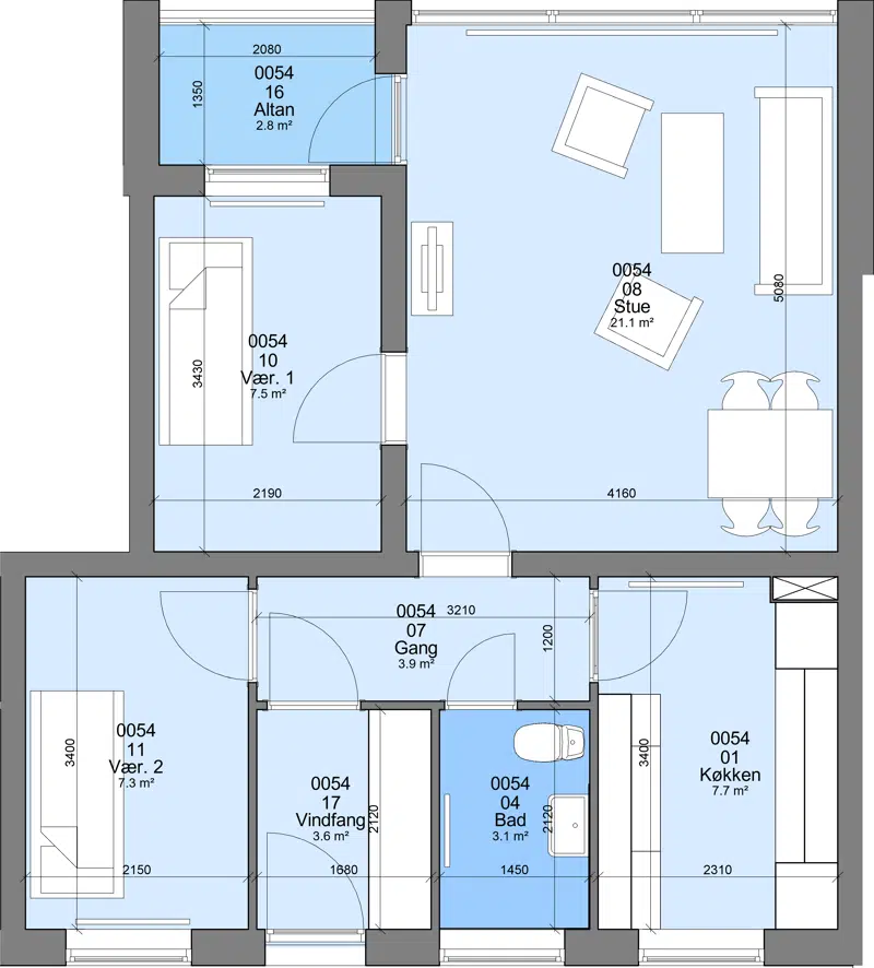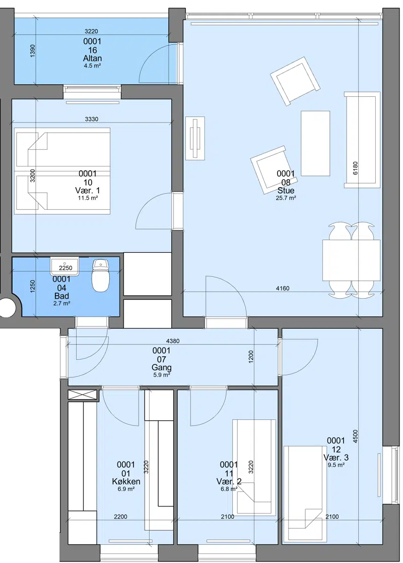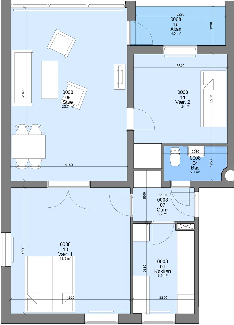6 stk 2 rums 61-65 m2, 27 stk 3 rums 72-88 m2, 48 stk rums 86-97 m2